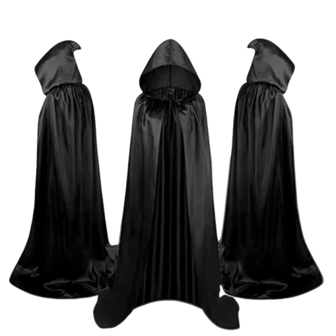 Unisex Black Hooded Cloak – Witch Cape for Halloween & Cosplay